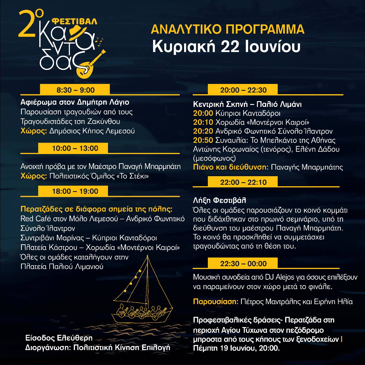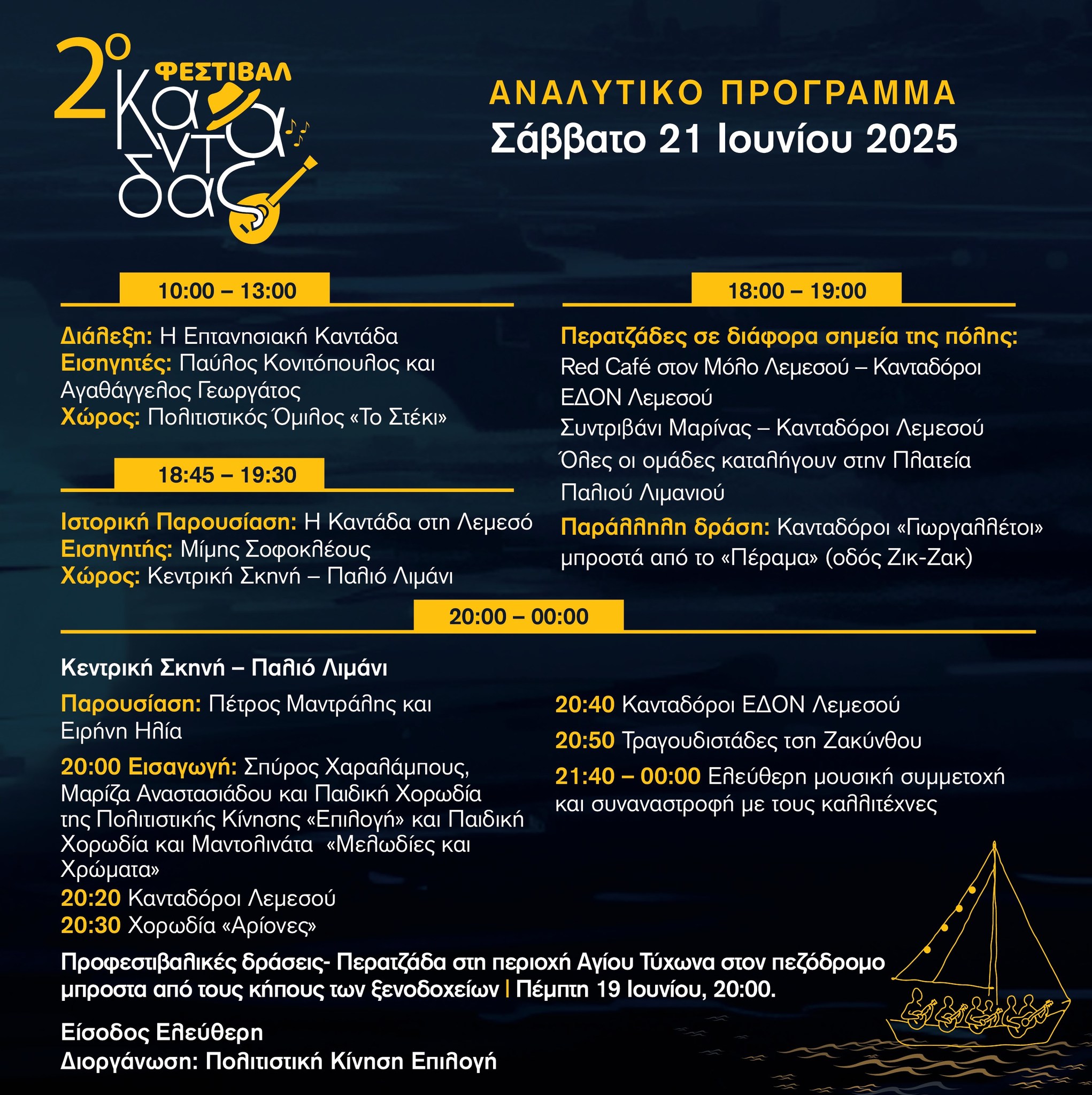 21-22 Ιουνίου 2025 | Φεστιβάλ Καντάδας | Παλιό Λιμάνι Λεμεσού | Είσοδος Ελεύθερη