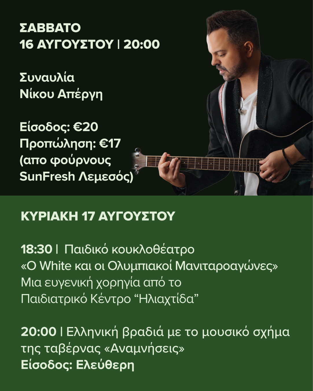 14-17 Αυγούστου 2025 | Προαύλιο Δημοτικού Σχολείου Λόφου | 20:00
