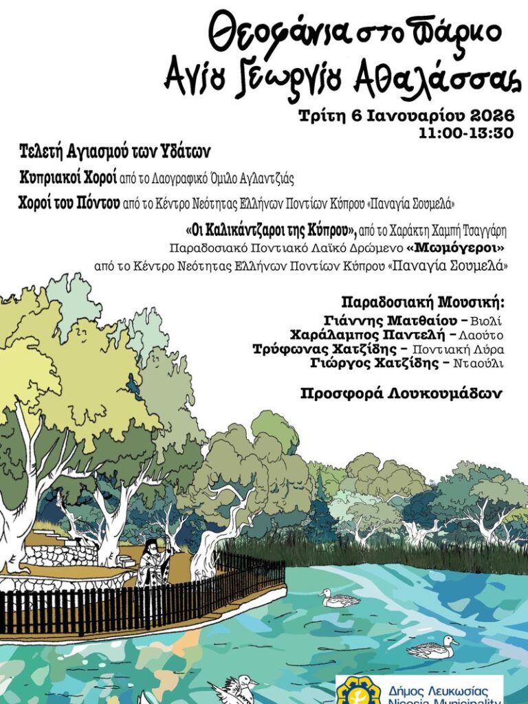 Ο Δήμος Λευκωσίας μας προσκαλεί να γιορτάσουμε τα Θεοφάνια και την Τελετή του Αγιασμού των Υδάτων σε μια μοναδική μέρα γεμάτη παράδοση, μουσική και οικογενειακή ατμόσφαιρα.