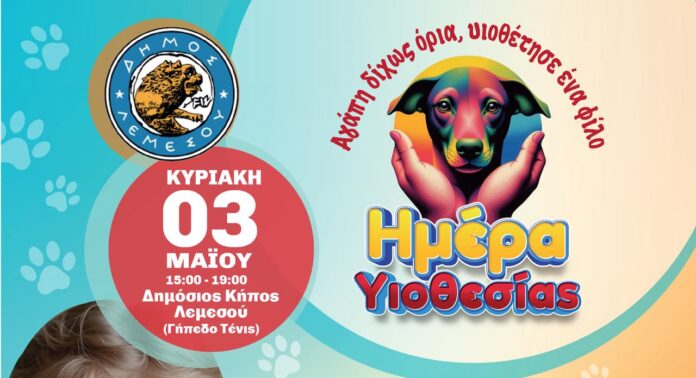 Η Επιτροπή Ευημερίας Ζώων του Δήμου Λεμεσού, διοργανώνει την Κυριακή, 3 Μαΐου 2026, την εκδήλωση «Αγάπη δίχως όρια – Υιοθέτησε ένα φίλο», στον Δημόσιο Κήπο Λεμεσού (Γήπεδο Τένις), από τις 15:00 έως τις 19:00.