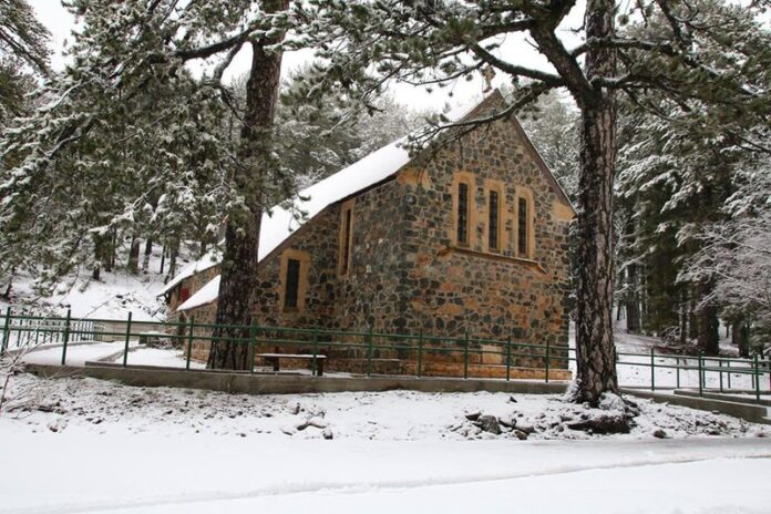 Στην καρδιά του Τρόοδος, λίγα μόλις βήματα από την κεντρική πλατεία, κρυμμένος ανάμεσα στα πεύκα, βρίσκεται ένας ναός που ξεχωρίζει… όχι μόνο για την τοποθεσία του, αλλά και για την ιστορία του.