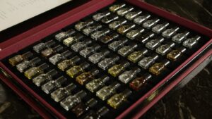 Η εμπειρία ξεκινά με έναν κατάλογο αρωμάτων. Κάθε άρωμα αντιστοιχεί σε έναν αριθμό και βρίσκεται σε ειδικό μπουκαλάκι, βοηθώντας τους συμμετέχοντες να ενεργοποιήσουν την όσφρηση και να εξοικειωθούν με τα διαφορετικά αρωματικά στοιχεία που μπορεί να κρύβει ένα κρασί.