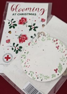 Τρία χριστουγεννιάτικα στολίδια – μπάλα, αστέρι και δέντρο – κατασκευασμένα από βιοδιασπώμενο χαρτί με σπόρους πετούνιας μπορούν μετά τις γιορτές να φυτευτούν, ανθίζοντας ως σύμβολο ελπίδας.