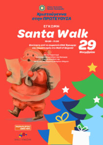 Η εκδήλωση θα πραγματοποιηθεί το Σάββατο 29 Νοεμβρίου, από τις 10:30 έως τις 20:30, στη Λεωφόρο 28ης Οκτωβρίου, μπροστά από το Mall of Engomi, με ελεύθερη είσοδο για το κοινό. Η μέρα θα ξεκινήσει με το Santa Walk από το Σωματείο ΕΘΑ Έγκωμης, ενώ η ελληνική μπάντα Hermaphrodite’s Child θα προσφέρει ζωντανή μουσική καθ’ όλη τη διάρκεια της ημέρας. Στη Χριστουγεννιάτικη Αγορά θα φιλοξενηθούν χειροποίητα δώρα και προϊόντα τοπικών δημιουργών.