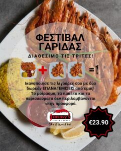 Κάθε Τρίτη, το αγαπημένο εστιατόριο σε Λεμεσό και Πάφο σε καλεί να απολαύσεις ένα πλούσιο πιάτο γεμάτο φρέσκες, ζουμερές γαρίδες, αρωματικό ρύζι και λαχταριστές sauces, μόνο με €23.90 — και μάντεψε: έχεις δύο δωρεάν επαναγεμίσεις! 🤩