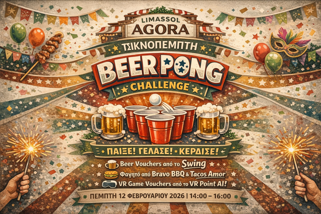 Τσικνοπέμπτη χωρίς παιχνίδι, γέλια και… μπύρα; Δύσκολο να το φανταστείς. Στη Λεμεσό, τη λύση δίνει για άλλη μια χρονιά η Limassol AGORA, που βάζει το δικό της twist στη γιορτή, στήνοντας ένα απολαυστικό Beer Pong Challenge με άμεσα έπαθλα.