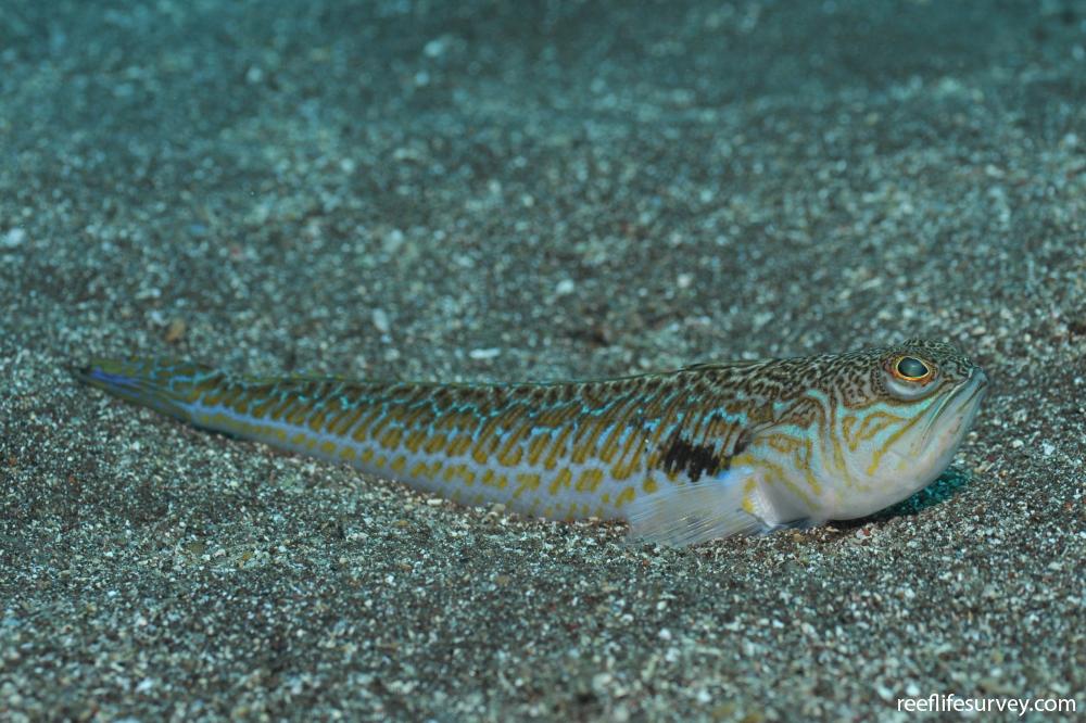 Το ψάρι αυτό έχει μεγάλο στόμα το οποίο έχει εμφανή κλίση προς τα πάνω.  Η κλίση αυτή, διευκολύνει τη γρήγορη αρπαγή του «θηράματός» της γι’ αυτό και η δράκαινα περνά τον περισσότερο χρόνο καμουφλαρισμένη στην άμμο, έχοντας μόνο το κεφάλι της εμφανές.  Παρόλο που κυνηγά για φαγητό κατά τη διάρκεια της μέρας, το καλοκαίρι βγαίνει στα ρηχά και κρύβεται όλη τη μέρα στην άμμο για τα μικρά βυθόβια ψάρια.  Γενικά, τρέφεται με μικρά ασπόνδυλα και ψάρια.