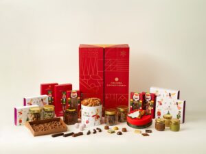 Στο επίκεντρο της συλλογής βρίσκονται τα γιορτινά hampers, καλαθάκια επιμελημένα με απόλυτη προσοχή στη λεπτομέρεια. Δημιουργημένα για να εκπέμπουν διακριτική πολυτέλεια, αποτελούν ιδανική επιλογή για όσους θέλουν να προσφέρουν ένα δώρο γεμάτο γεύση, φροντίδα και υψηλή αισθητική.