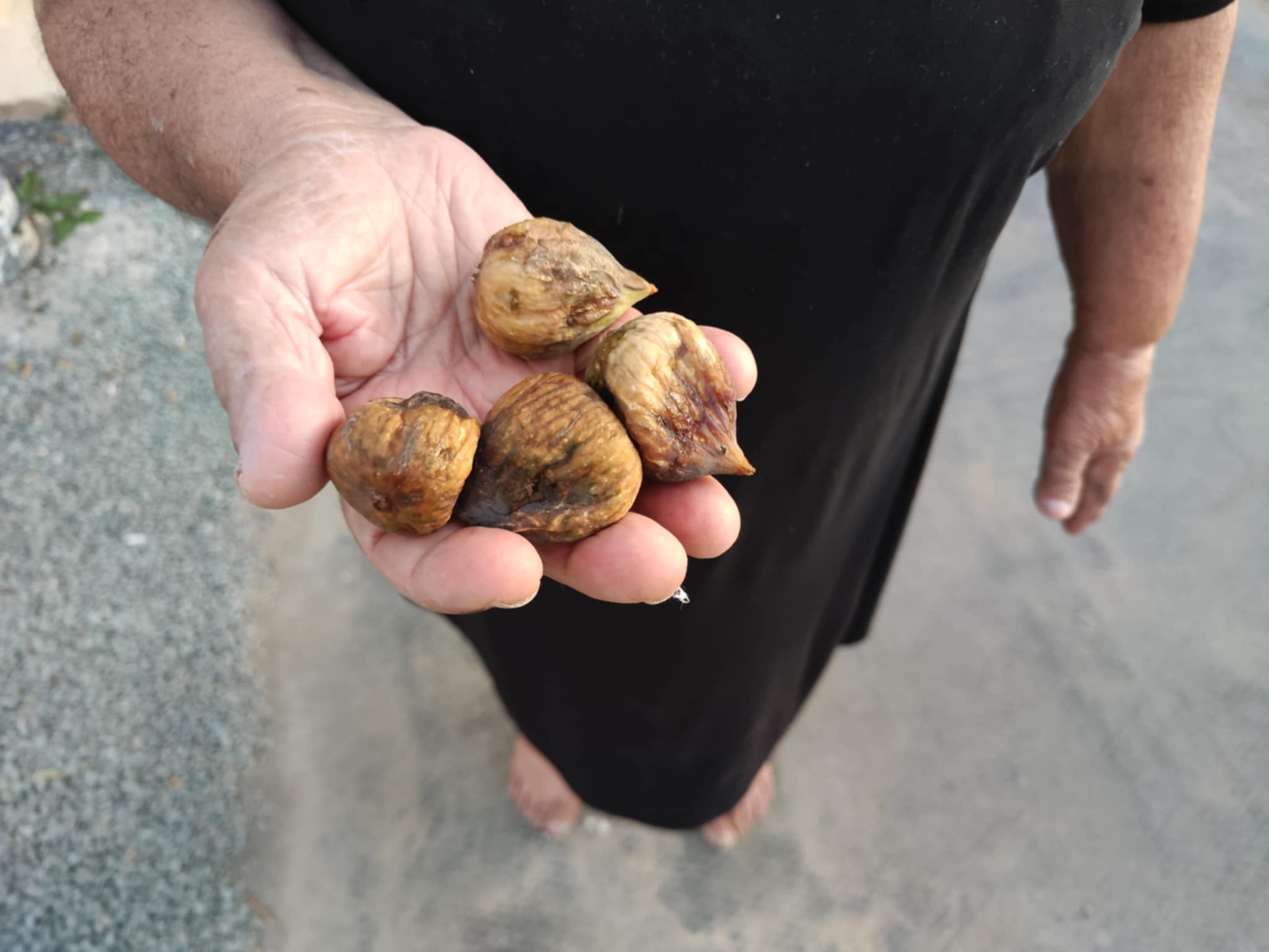 «Μου έφεραν οι κοπελλούες σύκα τζαι ήταν βαροψημένα. Τζαι τα έγυρα τζαι εγώ πας το πανέρι. Τα αφήνω πέντε – έξι μέρες ώσπου να στεγνώσουν. Μετά θα τα πλύνω, τζαι τα βάλλω μες το αλεύρι. Τζαι μετά, θα είναι έτοιμα για να τα φάμε».