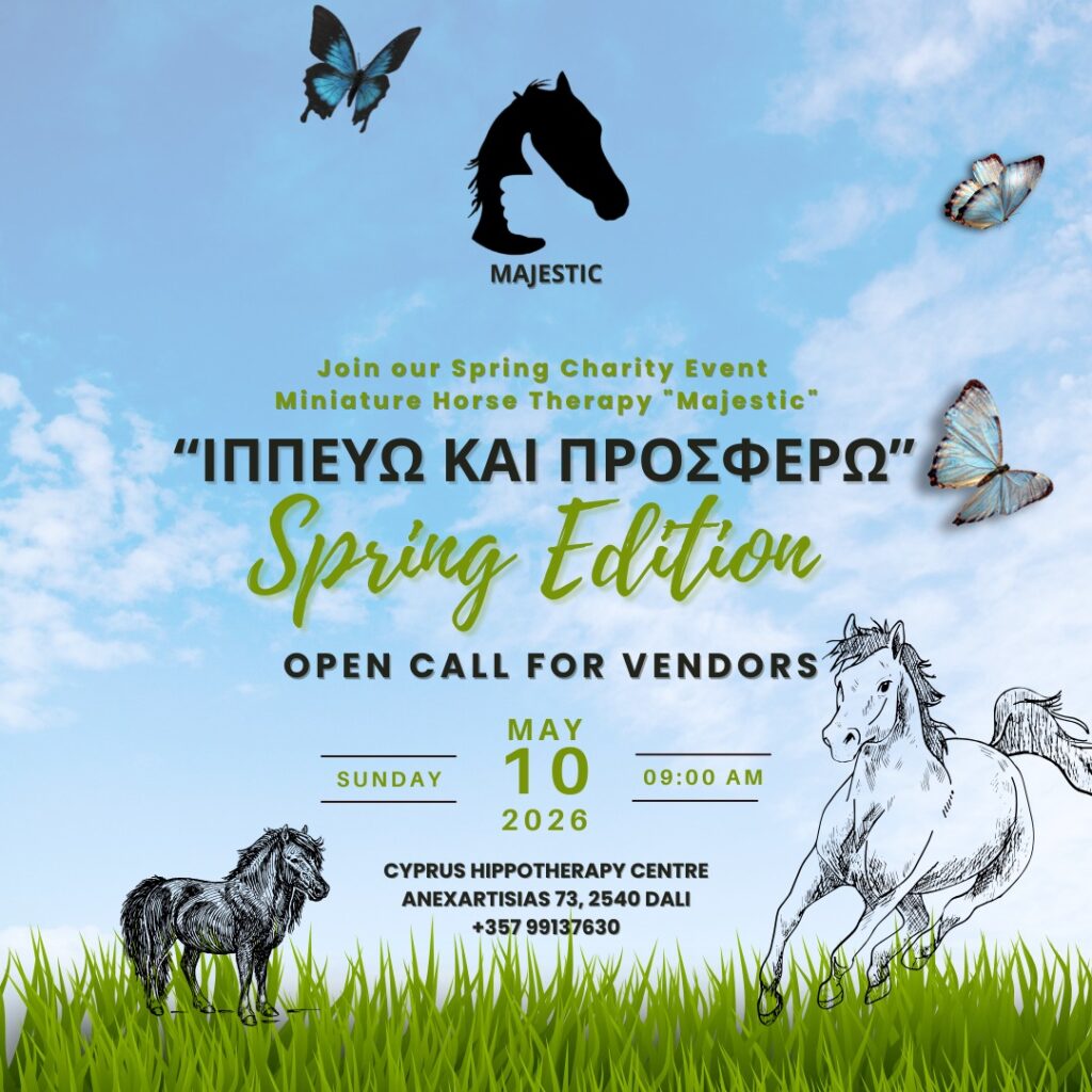 Μια ξεχωριστή εμπειρία γεμάτη συναίσθημα, χαμόγελα και ουσιαστική προσφορά ετοιμάζει ο Μη Κερδοσκοπικός Οργανισμός Miniature Horse Therapy «Majestic», προσκαλώντας μικρούς και μεγάλους στην Ανοιξιάτικη Φιλανθρωπική Εκδήλωση «Ιππεύω και Προσφέρω», την Κυριακή 10 Μαΐου 2026.