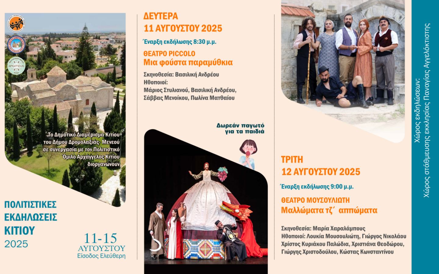 Οι πολιτιστικές εκδηλώσεις ξεκίνησαν και στο Δημοτικό Διαμέρισμα Κιτίου του Δήμου Δρομολαξιάς – Μενεού, σε συνεργασία με τον Πολιτιστικό Όμιλο «Αρχάγγελος Κιτίου».