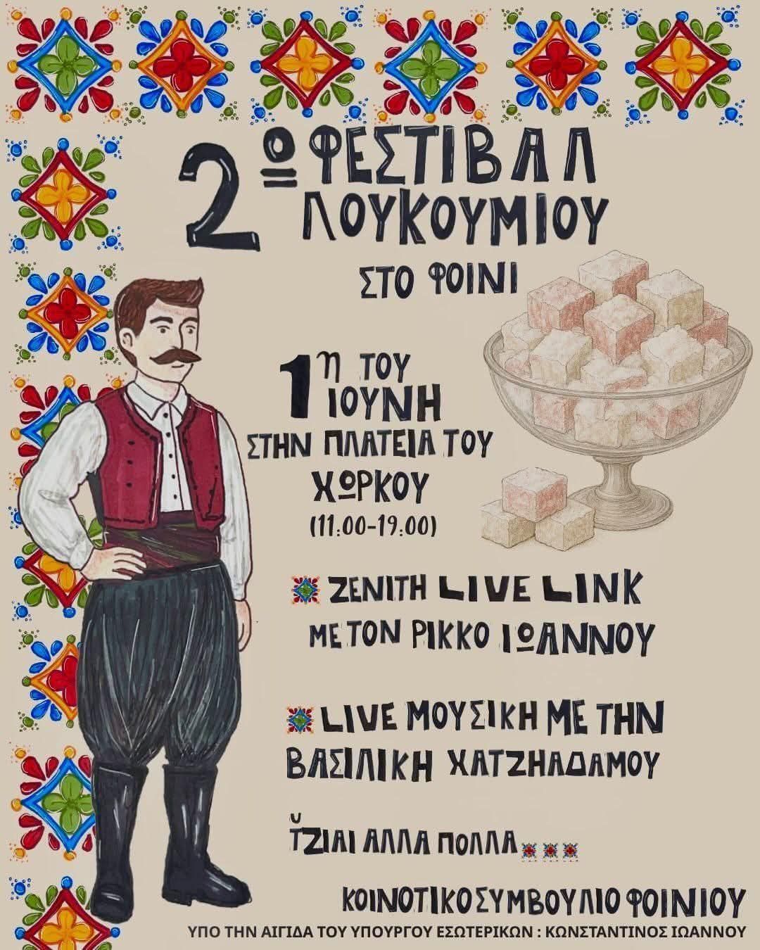Όλες οι πληροφορίες για το 2ο Φεστιβάλ Λουκουμιού στο όμορφο Φοινί
