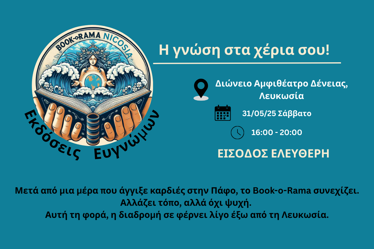 Στα ΜΚΔ και συγκεκριμένα στη σελίδα του Εκδοτικού Οίκου Ευγνώμων αναφέρεται χαρακτηριστικά ότι «το Book-o-Rama Nicosia 2025 είναι ένα «ΝΑΙ» σε όλα όσα δεν φωνάζουν, αλλά μένουν». Πόσες αλήθειες κρύβει η πιο πάνω πρόταση και πόσες πολλές σκέψεις δημιουργούνται στο μυαλό μας αμέσως;