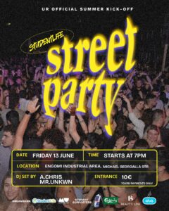 Το StudentLife Street Party έχει καθιερωθεί ως το must-go event κάθε εξαμήνου για τους φοιτητές της Κύπρου. Είναι η τέλεια ευκαιρία να αφήσεις πίσω το άγχος των εξετάσεων και να απολαύσεις μια αξέχαστη βραδιά με φίλους, νέα πρόσωπα και ατελείωτη διασκέδαση.