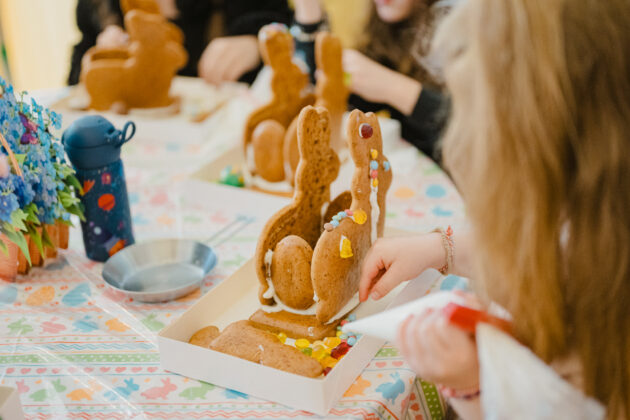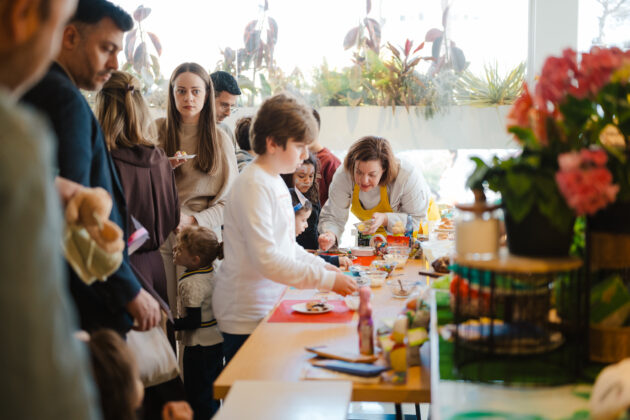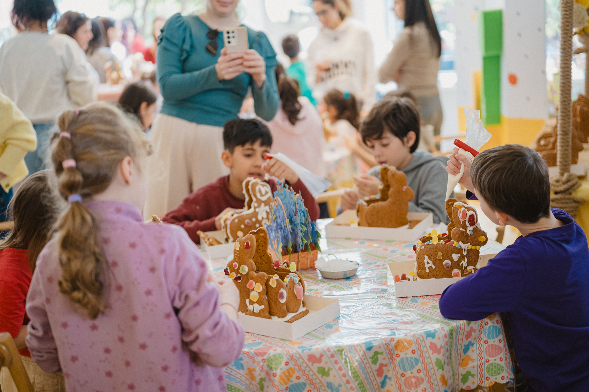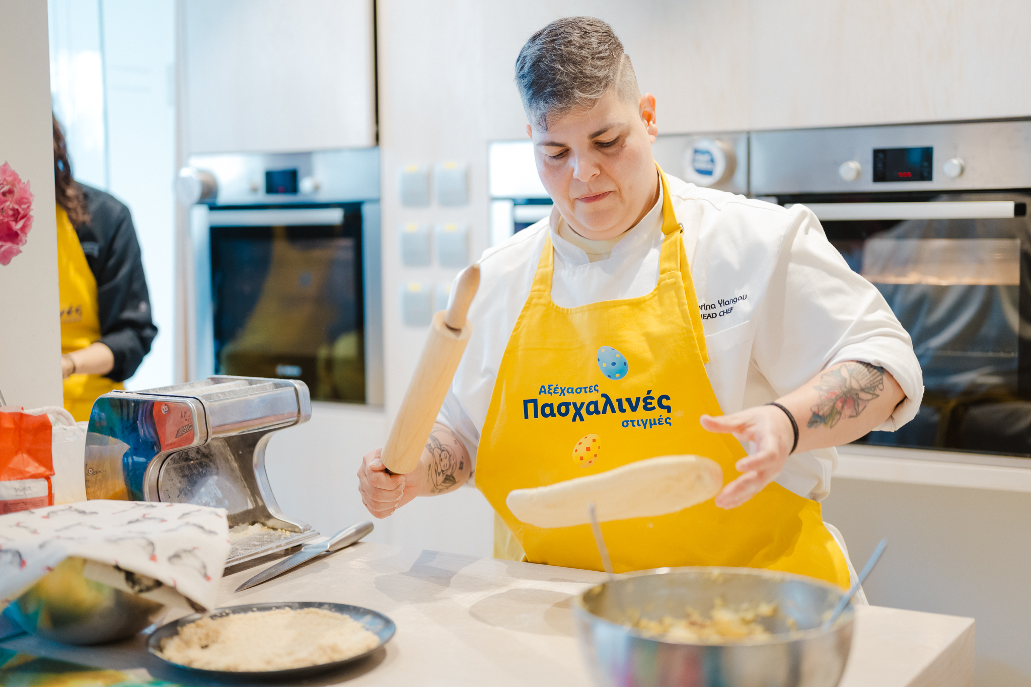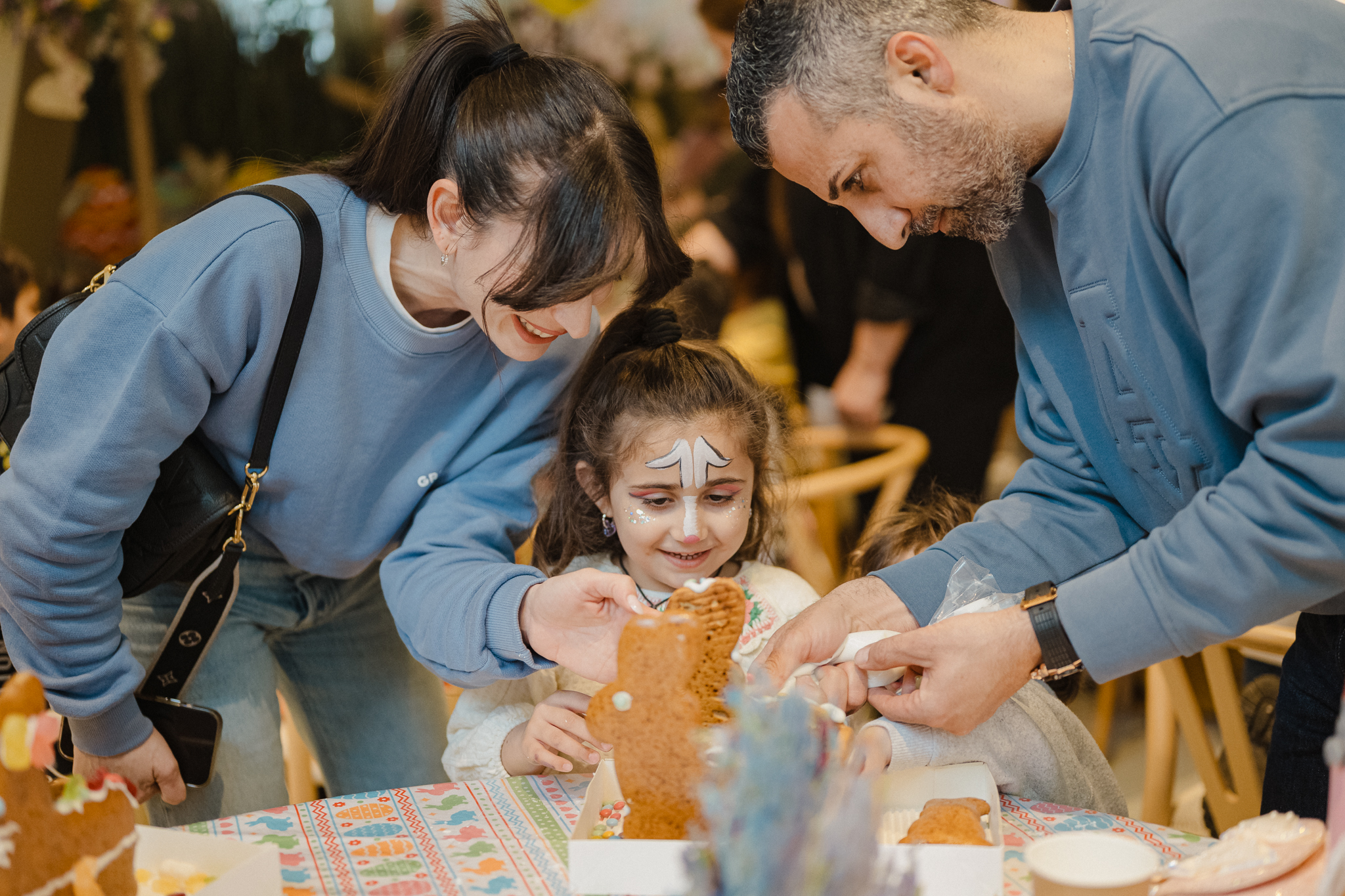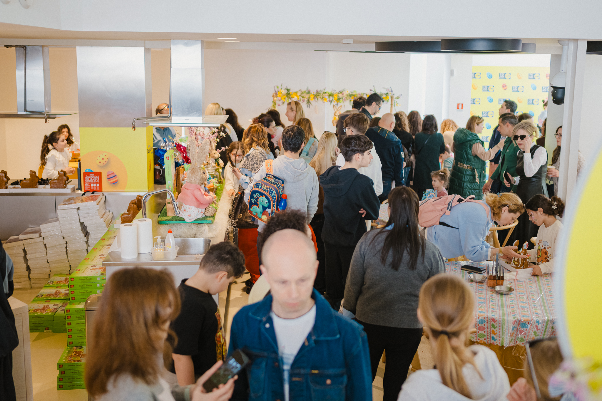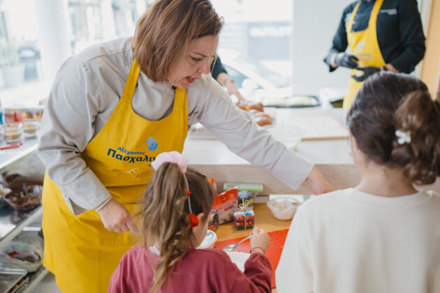 Οι μυρωδιές από φρέσκες φλαούνες και παραδοσιακά κουλουράκια σε υποδέχονταν πριν καν φτάσεις στην είσοδο. Η ζύμη ήταν ήδη έτοιμη και περίμενε τα παιδιά να τη δοκιμάσουν, να τη δουλέψουν με τα χέρια τους και να πάρουν μια πρώτη γεύση από το πώς φτιάχνονται όλα αυτά τα πασχαλινά εδέσματα — φλαούνες, τσουρέκια, σοκολατάκια. Κάτι που, όπως φάνηκε, τα ενθουσίασε ιδιαίτερα. Λίγο πιο μέσα, ο γνώριμος Πασχαλινός αρκούδος τραβούσε τα βλέμματα, με τα παιδιά να τρέχουν να φωτογραφηθούν μαζί του, δίνοντας τον δικό τους ρυθμό στη γιορτή. Σε κάθε γωνιά υπήρχε δράση. Παιδιά και γονείς μαζί δοκίμαζαν, δημιουργούσαν και έμπαιναν στο πνεύμα των ημερών, φτιάχνοντας πασχαλινές λιχουδιές με σοκολάτα και μπισκότα. Στην κουζίνα, οι σεφ κρατούσαν αμείωτο το ενδιαφέρον, με τον κόσμο να παρακολουθεί από κοντά, να μυρίζει, να δοκιμάζει. Κάθε πιάτο έφερνε μαζί του κάτι γνώριμο, κάτι από το Πάσχα όπως το έχουμε συνηθίσει.