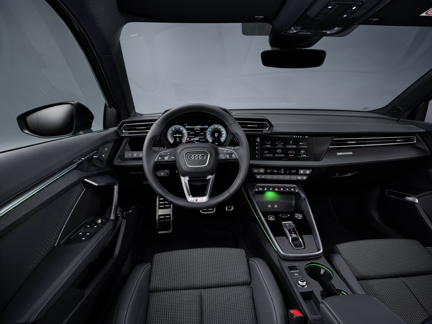 Στο εσωτερικό, η φιλοσοφία είναι ξεκάθαρα προσανατολισμένη στον οδηγό και την ψηφιακή εμπειρία. Το ψηφιακό cockpit προσφέρει πλήρως παραμετροποιήσιμες πληροφορίες, ενώ το σύστημα infotainment υποστηρίζει Apple CarPlay και Android Auto μέσω του Audi Smartphone Interface. Ταυτόχρονα, οι υπηρεσίες Connected Services ενισχύουν τη συνδεσιμότητα, κάνοντας την καθημερινή χρήση πιο εύκολη και λειτουργική. Ο εξοπλισμός άνεσης και ασφάλειας είναι ιδιαίτερα πλούσιος για την κατηγορία. Το adaptive cruise control διευκολύνει τα ταξίδια, ενώ το park assist με κάμερα οπισθοπορείας κάνει το παρκάρισμα πιο απλό και ασφαλές. Παράλληλα, το σύστημα lane departure warning με emergency assist προσθέτει ένα επιπλέον επίπεδο προστασίας, ενισχύοντας την ενεργητική ασφάλεια του οχήματος.