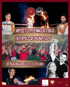 Η φετινή Χριστουγεννιάτικη βραδιά στο Χωριό Φικάρδου θα πραγματοποιηθεί την Παρασκευή 22 Νοεμβρίου στις 17:00. Το κοινό θα απολαύσει ζωντανή μουσική από τον Τεύκρο, τη Μαριλένα και τους Batukinio, ενώ εντυπωσιακά fire shows θα ολοκληρώσουν την εορταστική ατμόσφαιρα.