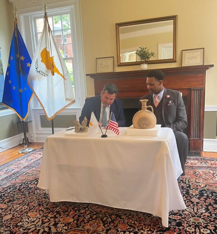Σύμφωνα με ανάρτηση της Πρεσβείας της Κυπριακής Δημοκρατίας στις ΗΠΑ, πραγματοποιήθηκε την Τρίτη 05 Αυγούστου 2025, «σεμνή τελετή» για τον επαναπατρισμό δύο κυπριακών αρχαιοτήτων, ενός τέθριππου άρματος κυπρο-αρχαϊκού τύπου (600π.Χ) και μιας κυπρο-γεωμετρικής/αρχαϊκής φιάλης (750 π.Χ.). Στην τελετή συμμετείχαν Αμερικανοί αξιωματούχοι από το Τμήμα Διεθνών Επιχειρήσεων του FBI, το Γραφείο Διεθνών Υποθέσεων του Υπουργείου Δικαιοσύνης και το Γραφείο Ευρωπαϊκών και Ευρασιατικών Υποθέσεων του Υπουργείου Εξωτερικών.