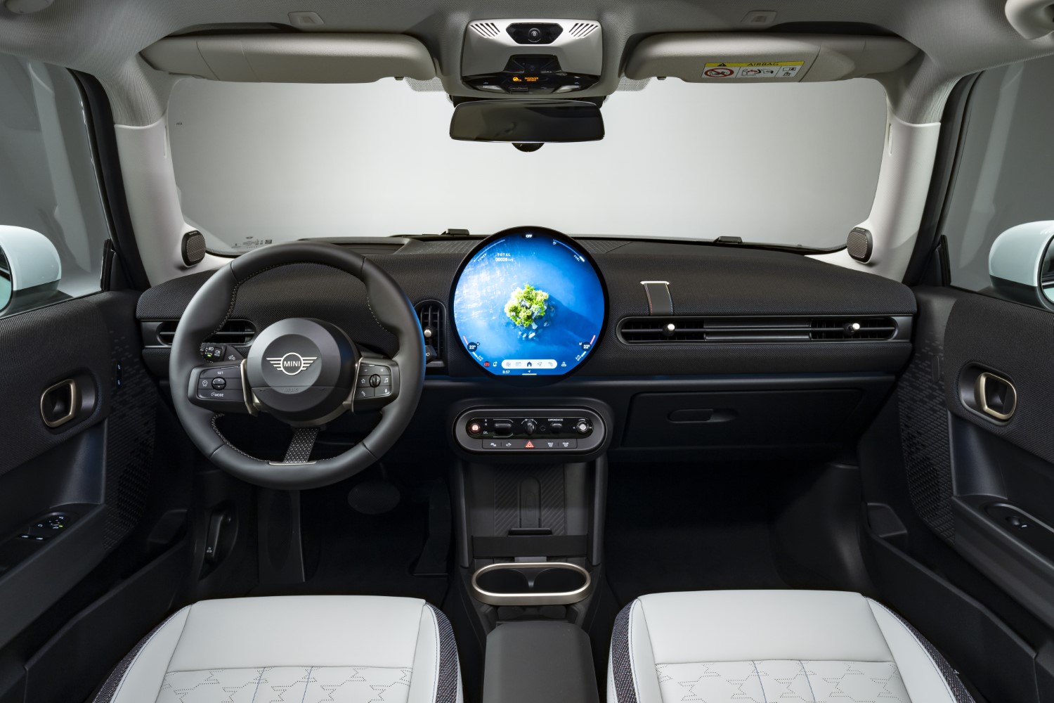 Το εσωτερικό του MINI Cooper αποτελεί έναν συνδυασμό κλασικού χαρακτήρα και σύγχρονης τεχνολογίας. Το cockpit χαρακτηρίζεται από τη μεγάλη στρογγυλή OLED οθόνη 240 mm, η οποία λειτουργεί ως κεντρικό σημείο ελέγχου για το σύστημα πολυμέσων και τις βασικές λειτουργίες του οχήματος. Το νέο MINI Operating System 9 προσφέρει μια εμπειρία χρήσης παρόμοια με εκείνη ενός smartphone, επιτρέποντας τον εύκολο χειρισμό μέσω αφής. Η ψηφιακή εμπειρία ενισχύεται περαιτέρω από τα MINI Experience Modes, τα οποία προσαρμόζουν τον φωτισμό, τα γραφικά και τη σχεδίαση ήχου στο εσωτερικό. Μέσω του συστήματος φωνητικών εντολών, ο οδηγός μπορεί απλώς να πει «Hey MINI» για να ενεργοποιήσει τον έξυπνο ψηφιακό βοηθό.